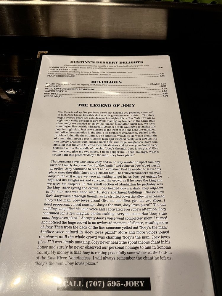 Welcome to Joey’s Original Pizza, where every bite transports you to pizza paradise! Nestled in a charming Victorian house at 727 Mendocino Ave, Santa Rosa, this pizzeria offers a cozy atmosphere perfect for families and friends alike. The menu is diverse and inviting, featuring everything from classic slices to unique creations.